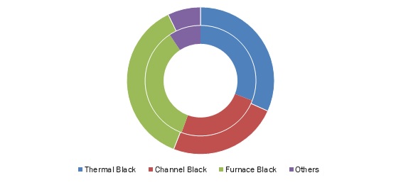 全球碳黑市按产品类型、最终用途和地区划分。根据产品类型,行业进一步细分为热黑、通道黑、炉黑等。应用领域进一步细分为塑料、轮胎、非轮胎、涂料等。炉黑是2017年最大的产品板块。