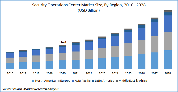 North America market dominated the global security operations center market in 2020. Due to a significant increase in the need for secure enterprise operations, businesses are increasingly turning towards security operations centers. Established internet infrastructure in the region combined with high adoption of advanced technologies fuels the growth of the market in the region. The growing adoption of technologically advanced systems by enterprises for protection against cyber-attacks and data theft fuels the market growth in the region.